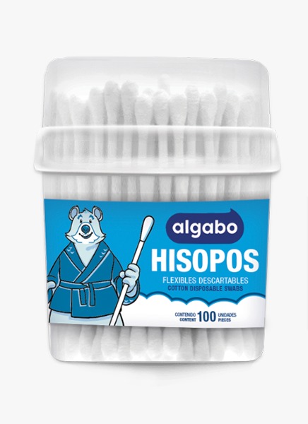 HISOPOS DE SEGURIDAD BABY ALGABO 100 % PURO ALGODÓN x 55 UNIDADES